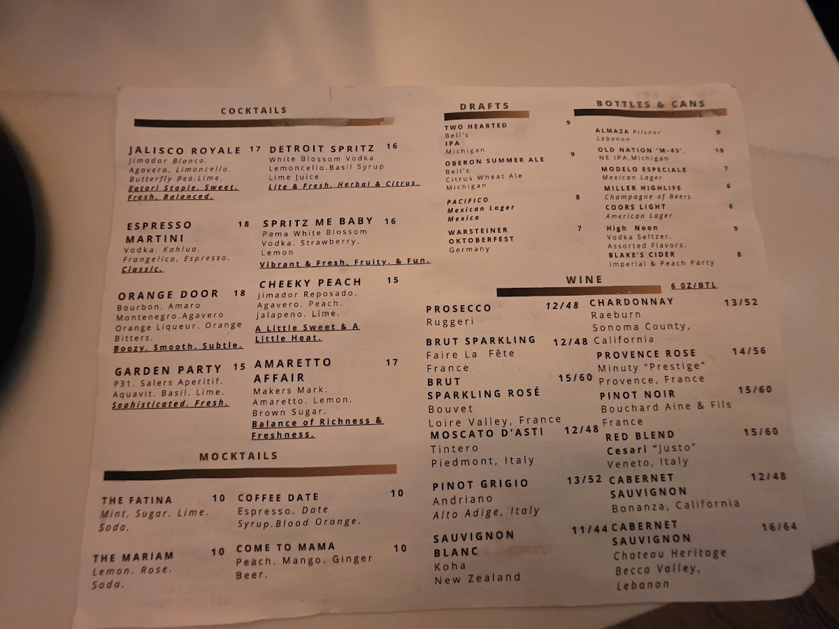 Overall, Eatóri Detroit's menu offers a perfect balance of flavors and textures, with something for every palate, whether you're here for a casual meal or a more refined dining experience.